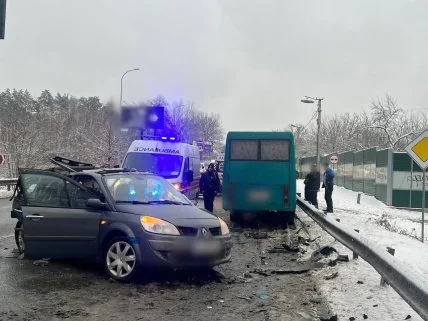 Известно, что на 38 километре трассы "Киев — Ковель" столкнулись автобус, легковушка и грузовик. Прибывшие на вызов правоохранители предварительно установили, что 70-летний водитель Renault остановил автомобиль чтобы совершить поворот налево. Водитель грузового автомобиля " КамАЗ", который ехал за легковушкой, не придерживался безопасной дистанции и на скорости влетел в Renault.