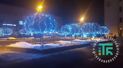 Не смотря на это, власти Броваров решили ярко украсить майдан Свободы и подсветили здесь практически каждое дерево.