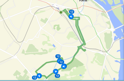 - Автобус №2м " ибернетический центр — ст. м. "Теремки" — ст. м. "Лыбедская". Интервал движения — 1 минута.
