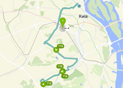 Также связь с большой землей обеспечивает автобус 119 — он следует от конечной остановки на ул. Василия Касияна до Контрактовой площади и проезжает по Центральному железнодорожному вокзалу.