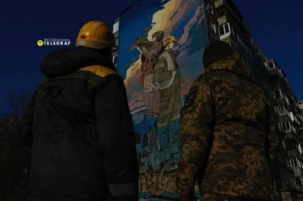 Так, на мурале "Защитники света", расположенном на фасаде многоэтажного жилого дома на бул. Н. Михновского, 3-А в Печерском районе, один из персонажей изображен в защитной каске с символикой этой энергетической компании.