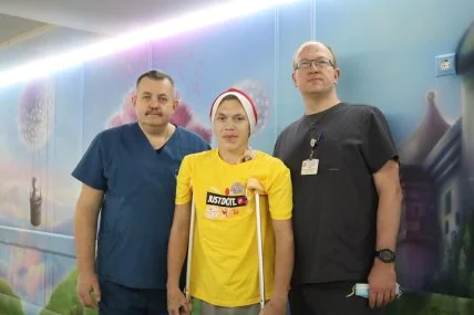 Сейчас пациент проходит лечение и реабилитацию в отделении ортопедии и травматологии. После второй операции мальчик уже может садиться в постели и начинает ходить на костылях.