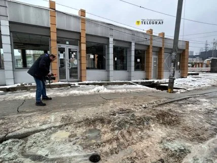 Об этом сообщил корреспондент "Телеграфа", который побывал на месте происшествия и показал, что на тротуаре появились заметные трещины, а возле одной из электрических опор и вовсе образовалась воронка.