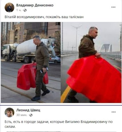 Стоит отметить, что подобные блоки имеют внутренний объем до 100 литров и могут наполняться водой или песком, а потому перенести его в одиночку сможет далеко не каждый. Впрочем, непонятно были ли эти блоки чем-либо наполнены и насколько, когда их передвигал Кличко.