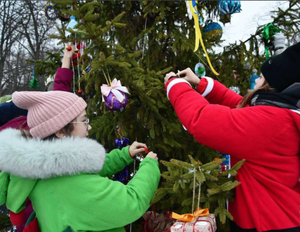 В Голосеевском районе провели интерсную акцию под названием "Укрась елку победы". Ее суть заключалась в том, что детям предложили собственноручно изготовить елочные игрушки и украсить ими живую ель, которая располагается на территории парка имени Максима Рыльского.