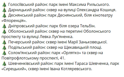 Полный перечень адресов по районам Киева, где были установлены праздничные елки: