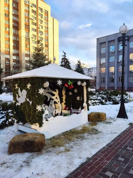 Кроме этого здесь была организована белоснежная фотозона в виде праздничного вертепа.