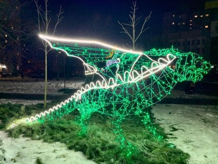 Здесь можно встретить сказочного оленя, который везет сани с подарками и дракона, который является символом наступающего 2024 года.