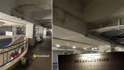 В метро Киева произошла очередная беда. Как передает корреспондент "Телеграфа" в вестибюле станции "Академгородок" через потолок начала просачиваться вода.