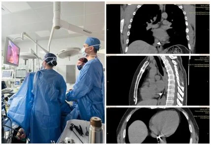 Специфическое расположение осколка усложняло оперативное вмешательство и было решено провести миниинвазивное торакоскопическое удаление обломка, с применением специального магнита. Пациенту сделали небольшой надрез в грудной стенке и извлекли оттуда инородное тело.