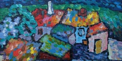Примечательно, что она не пишет с натуры. Натура отвлекает ее от того, что происходит в ней. И происходит не мгновенно, вспышка – неточное слово. Это движение долгое, поисковое. Картины, на которых по 5-6 слоев краски (еще 1 слой - и сгустки краски начнут отваливаться, как перезревшие груши), сильнее "быстрых". Ее энергия созревает в работе.