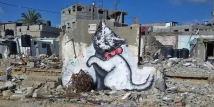Британский уличный художник Бэнкси нарисовал котенка на разрушенном здании в секторе Газа.