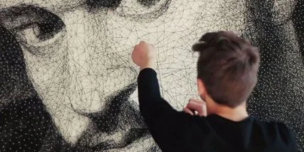 Парень создал уникальный портрет известного певца и актера Джастина Тимберлейка (Justin Timberlake), использовав для этого порядка двадцати четырех километров ниток и тринадцать тысяч гвоздей.