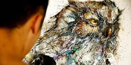 Художник создает потрясающие портреты совы из хаотичных брызг красок