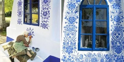 90-летняя жительница чешской деревни Лука (Louka) старается сделать свою малую родину более красивой и привлекательной. Каждую весну и лето она украшает окна и дверные рамы расписными узорами.