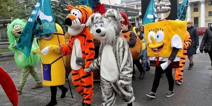 Участники парада - актеры театров кукол, студенты театрально-художественного колледжа и детские театральные любительские коллективы. Они прошли от парка им. Лазаря Глобы по пр. Дмитрия Яворницкого к Европейской площади, где Днипровский городской театр кукол показал импровизированное представление.