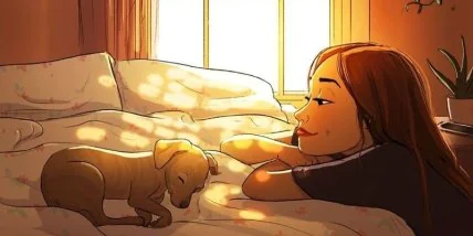 Вдохновляющие иллюстрации о жизни девушки и ее любимого домашнего питомца.