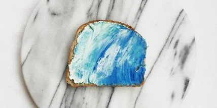 Всё, что она делает, это смешивает сливочный сыр с порошком спирулины для получения синего цвета, капли хлорофилла для получения зелёного, и вуаля! У вас вкусный и красивый завтрак! Также можно делать тосты других цветов, используя свекольный сок для получения розового цвета, корень куркумы — для жёлтого и оранжевого, порошок сушёной черники — для фиолетового.