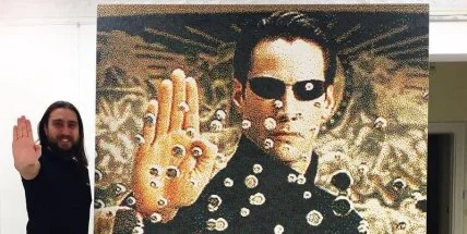 Если смотреть на них издалека, то работы турецкого художника Чагатая Одабаша (Çağatay Odabaş) похожи на крупномасштабные печатные постеры к фильмам, но если подойти поближе, то можно увидеть, что на самом деле они состоят из сотен тысяч вручную нанесённых точек разных размеров. По словам 37-летнего художника, на его творчество в значительной степени повлияли два его любимых детских занятия: играть с "кирпичиками" LEGO и смотреть фильмы. Сначала он выбирает из своей коллекции тысяч фильмом кадр из фильма, который хочет воссоздать. Затем он разделяет это изображение на несколько частей, отображая на каждой из них крошечные кружочки, которым назначается конкретный код, упрощающий последующий процесс раскрашивания. Затем он собирает все части вместе, словно сложную и увлекательную модель из LEGO, создавая свои ультрареалистичные шедевры пуантилизма.