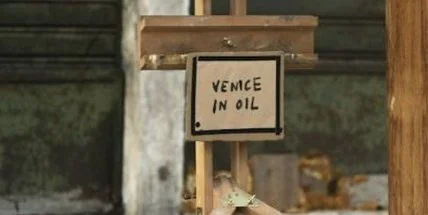 На своей официальной странице художник выставил в Instagram курьезное видео. На нем видно, что на одной из старинных улиц Венеции расположены работы Banksy. Общие работы подписаны как "Venice in Oil", что в переводе значит "Венеция в масле" или "Венеция в нефти". Инсталляция представляет собой несколько маленьких картин, образующих собой изображения корабля, стоящий на пирсе в Венеции, и в тоже время загрязняет окружающую среду.