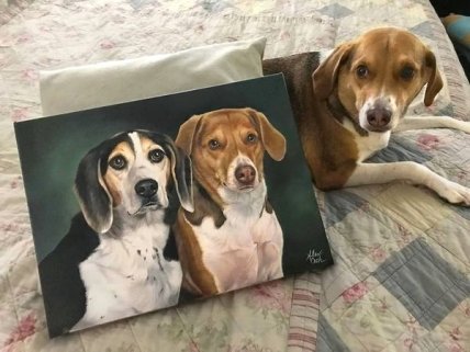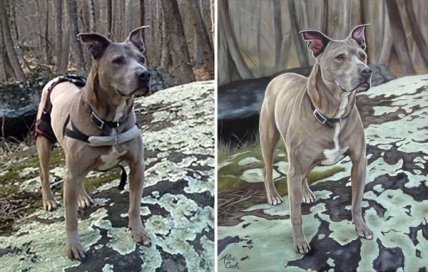 Художница берет не очень качественные снимки питомцев и превращает их в крутые картины.