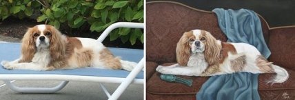 Кажется, телефоны с камерами были созданы только с одной целью — фотографировать наших хвостатых любимчиков в любое время дня и ночи. Котик миленько растянулся на полу — щелк! Пес смешно упал, пока бежал за мячиком — еще щелк! Но вот только качество частенько хромает на все четыре лапы, что и заметила художница Алекс Чех. Поэтому девушка начала на заказ рисовать портреты любимцев маслом и акварелью, рассказала она изданию Bored Panda. Картины получаются куда качественнее фотографий, плюс Алекс может поменять фон, добавить деталей или других животных, чтобы сделать портрет любимца достойным его!