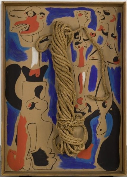 Веревка - центр притяжения этой картины, была нарисована в вертикальном положении, представляя человеческую фигуру. А уникальный способ представления делает ее похожим на удлиненное тело. Веревка символизирует насилие, возможно, таким образом, Миро изображал агонию, выступая против последствий ужасной войны.