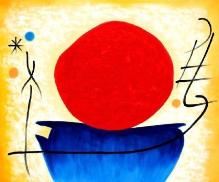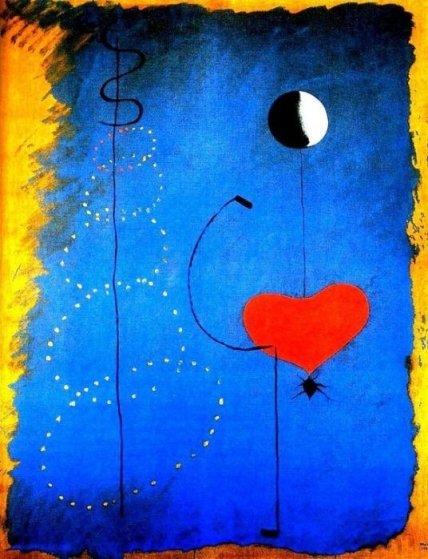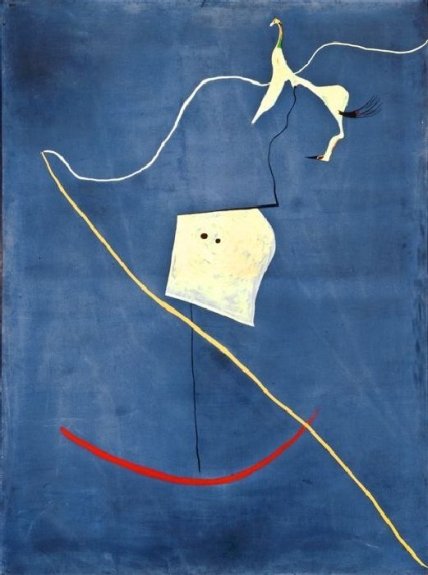 Тема абстрактного экспрессионизма, в котором специализировался Миро, была замечена именно в этой картине. Большой красный круг, словно солнце, сидит на фоне голубой равнины, которая является ясным небом. Абстрактные линии и круги также видны вокруг фигуры. Стоит обратить внимание, что у художника была особая склонность проецировать различные элементы Вселенной на своем полотне, о чем и свидетельствует эта работа.