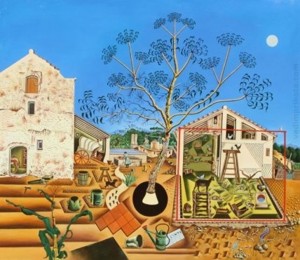 Эта удивительная картина была создана в период между летом и зимой 1921 и 1922 годов соответственно. Примитивный реализм в сочетании с кубизмом - вот что такое "Ферма". Особое произведение искусства суммирует жизнь Миро, проведенную в сельской местности. Эрнест Хемингуэй, известный американский писатель, купил эту картину, чтобы подарить ее своей жене. Мэри Хемингуэй (его четвертая жена) подарила это произведение Национальной Галерее искусств, расположенной в Вашингтоне, округ Колумбия, которая сохраняет его в настоящее время.