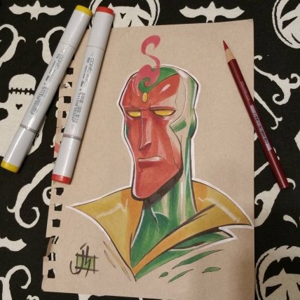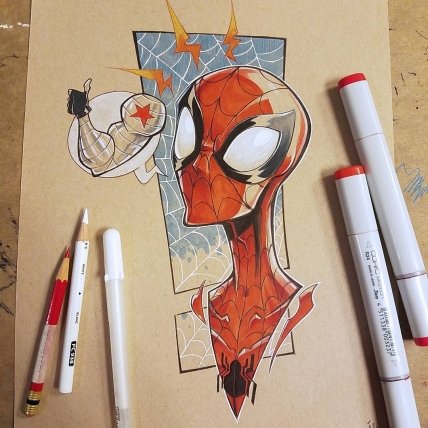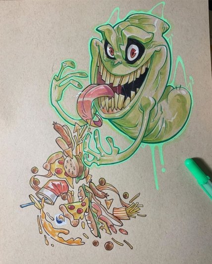 В последнее время Джеремайя всё чаще творит не на белой, а на крафт-бумаге, и его работы от этого становятся только занимательнее.