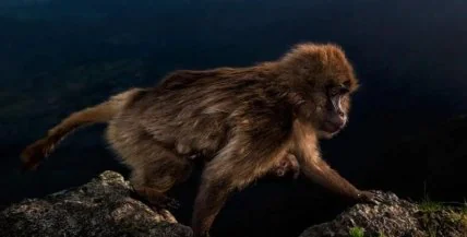 Фотограф вместе с отцом и другом встретили на рассвете обезьяну гелада с малышом на животе. Встреча произошла на Эфиопском плато - единственном месте, где обитает этот вид приматов.