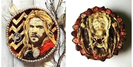 Черпая вдохновение в поп-культуре, эта художница создает на хрустящей корочке пирогов портреты знаменитых персонажей, людей или сцены из фильмов.