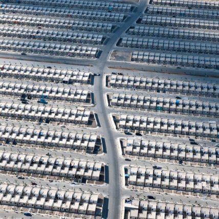 Сверху все эти бесконечные ряды однотипных домов выглядят даже эстетично. Но, несмотря на их красоту, фотограф указывает, что такая строгая геометрия вскрывает абсолютное безразличие властей к нуждам людей.
