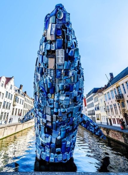 Эта художественная инсталляция была представлена на выставке современного искусства. Гигантского кита, готового выброситься на берег, поместили в главный канал Брюгге. Он сделан из 5 тонн пластика, собранного на берегу всего за 4 месяца. В нем есть пластиковые контейнеры, бутылки и даже стулья и ведра.
