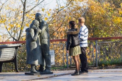Эта скульптура рассказывает об уникальной истории Луиджи Педуто (Luigi Peduto) и Мокрины Юрзук (Mokryna Yurzuk), чья любовь преодолела время и расстояние. Пара познакомилась в 1943 году в австрийском лагере для военнопленных, а после войны влюбленные расстались. Позже у них появились свои семьи, и они жили своей жизнью, но все еще помнили друг друга, и почти 60 лет спустя этот итальянский мужчина нашел свою любовь, благодаря шоу "Жди меня".