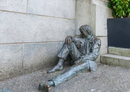 Этот бедняга, прислонившийся к стене у входа в Центральный Банк, представляет собой как мемориал, так и любого случайного человека. Он напоминает нам о том, что каждый человек заслуживает нашей помощи и внимания — неважно, богат он или беден. Мемориальная доска гласит: "Никто не является только тем, что вы видите" памятник должен напоминать людям о других, кому нужна помощь.