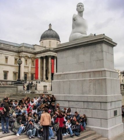 Одной из самых оригинальных и противоречивых работ стала скульптура Марка Куинна (Marc Quinn), изображающая беременную женщину-инвалида по имени Элисон Лаппер (Alison Lapper). Ошибка врача привела к тому, что эта женщина родилась без рук и с очень короткими ногами. Ее семья отдала ее в детский дом, где она провела все свое детство. Но она все равно научилась рисовать, держа кисточку в зубах, жила полноценной жизнью и даже родила ребенка. Эта скульптура символизирует человеческую красоту и невероятную жизненную силу, и в 2012 году ее выбрали в качестве символа Паралимпийских игр в Лондоне.