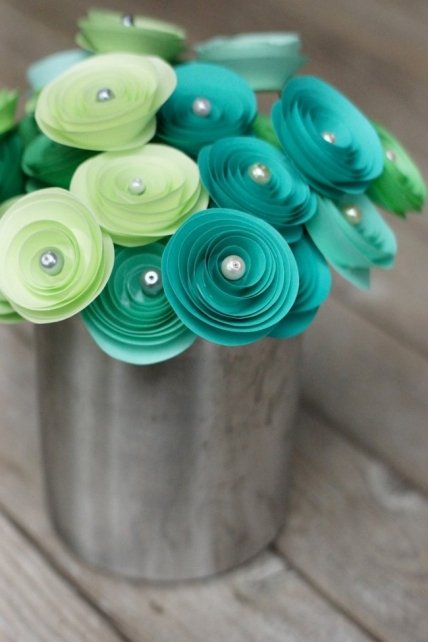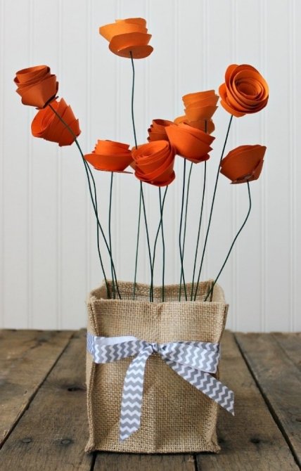 Бумажные цветы – это универсальные предметы декора, которыми можно украшать любые интерьеры. При составлении композиции цветы часто ставят в вазы, при этом вазы могут быть самыми разными: как традиционными, так и совсем необычными, как флакон из-под духов или нитяная катушка.