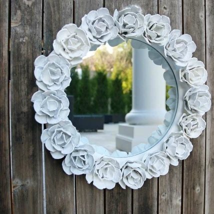 Эксклюзивный декор зеркала цветами из плотной бумаги.