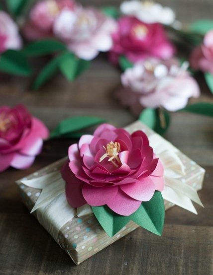 В загородных домах можно эффектно украсить лестничные перила цветочными гирляндами, сделанными своими руками. Сервировка стола с декором из бумажных цветов станет изюминкой вашего праздника. Еще один вариант применения – украшение подарочных коробок и других аксессуаров.