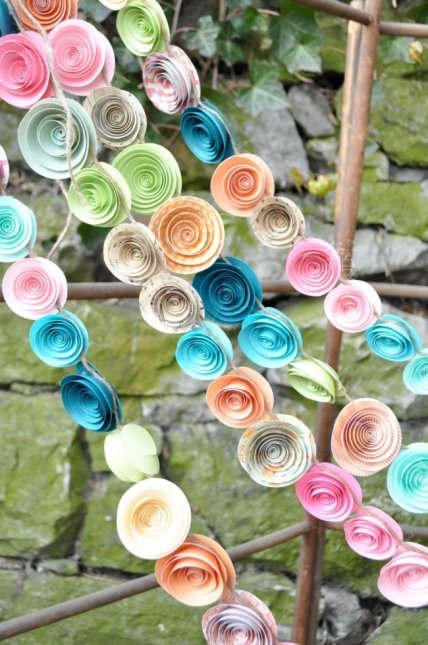 Яркая гирлянда из бумажных цветов.
