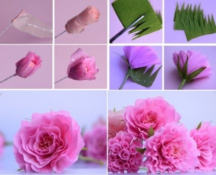 Розы из гофрированной бумаги