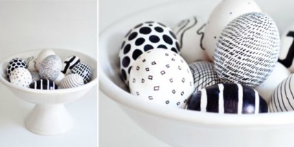 Использование нетрадиционного для пасхальных яиц чёрного цвета, придаёт им особую привлекательность и оригинальность. Окрашивание грифельной краской создаст эффект школьной доски, на которой можно рисовать, писать пожелания мелом или белым карандашом.