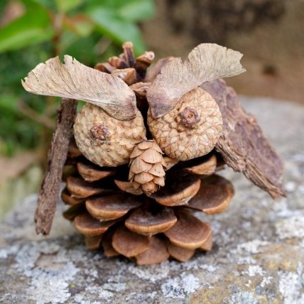Из шишек можно смастерить забавных пингвинов, потешных совят и милую семейку ежей.
