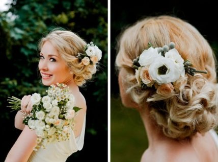 Свадебное украшение готово! Такая цветочная композиция выглядит очень нежно и изысканно. Она подойдёт не только для невесты, а и для её подружек.