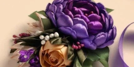 Резинка для пучка в технике Канзаши готова! Она смотрится очень нарядно, а благодаря классическим цветам прекрасно подходит для официальных мероприятий.