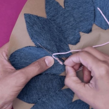 После того как все лепестки окантованы, обрезаем ткань по внешнему контуру получившегося цветка.