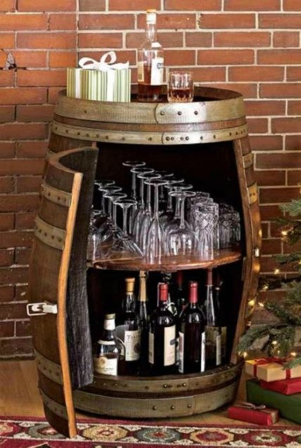 Чудесное превращение винной бочки в самобытный домашний мини-бар, который можно использовать еще и как стол.