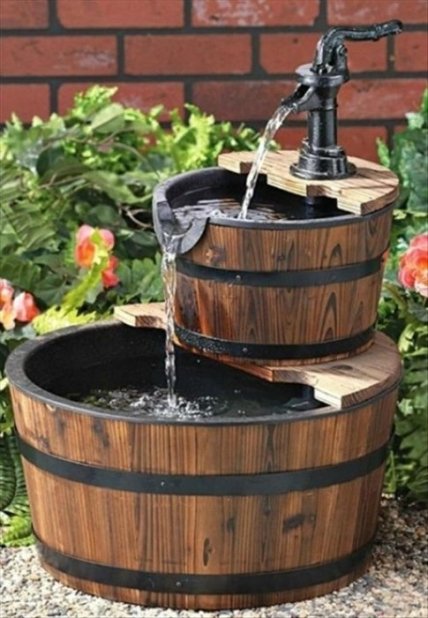 Украсить свой сад можно с помощью креативного фонтана, сделанного из винной бочки.