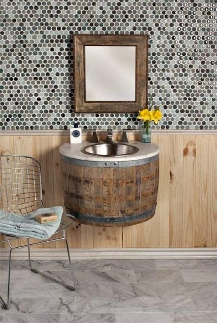Ненужную винную бочку можно превратить чудесную раковину в рустикальном стиле.